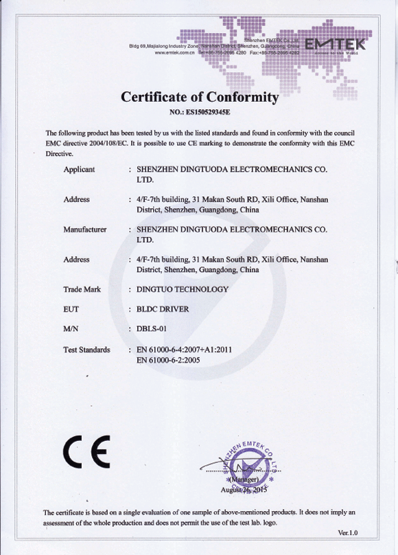 首頁(yè)->產(chǎn)品認(rèn)證->無(wú)刷驅(qū)動(dòng)器CE認(rèn)證證書(shū)